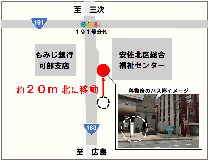 「可部上市」停留所の移設について 2026.03.04 以下の通り「可部上市」バス停留所(広島方面)が移設となります。 ご利用のお客様はご注意いただけますようお願いいたします。 1.対象停留所 「可部上市(広島方面)」 2.バス停留所移設日 2026年4月1日(水) 3.場所 詳しくはこちらをご覧ください。